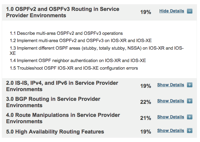I plan on studying for the CCNP Service Provider - SPROUTE exam over the up coming months. I suppose the best place to start is from the beginning and work my way through the requirements. As I study, Iโll keep notes and publish them here. Up first, โOSPFv2 and OSPFv3 Routing in Service Provider Environmentsโ.